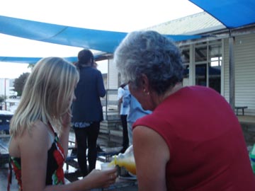 | A drinks break. Kyla, in her glamorous dress, is getting a drink from Mrs Merry. It was a great night. |
