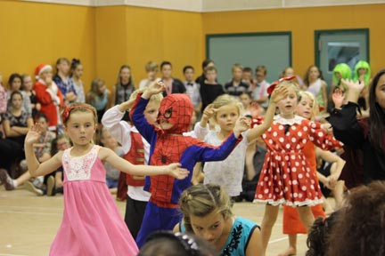 One of our departing teachers, |Sam Pendleton with two of her fancily dressed students. Good luck at Omanu Primary Miss P. |