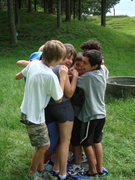 | Vincent, Dylan, Josh, Shane and Daniel taught their group a game - bat down. |