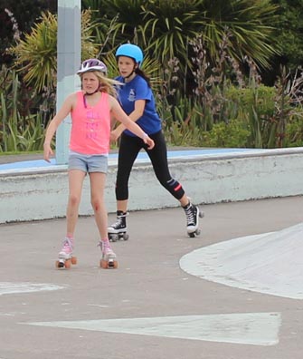 | Olivia Sheaff and Olivia Benner have a go on the roller skates. |