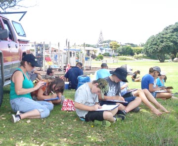 | Finally, after lunch, there was art. We are drawing the landscape. |