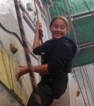 | Amelia does well up the wall. She got to the top of two climbs. |